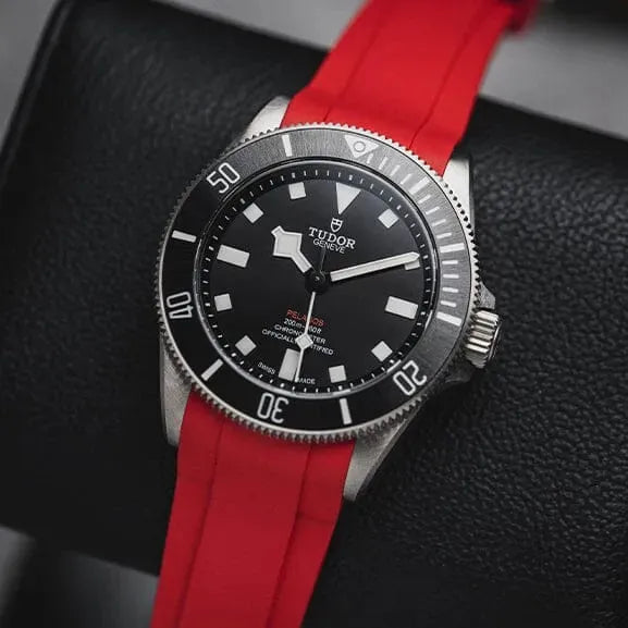 Wenn wir einen Blick auf das Schwestermodell Pelagos werfen, sehen sie auf den ersten Blick vielleicht etwas ähnlich aus, es handelt sich jedoch um zwei sehr unterschiedliche Linien. Während die Black Bay zurückblickt, blickt die Pelagos nach vorne. Dies ist Tudors technischste Taucheruhr, die für den professionellen Einsatz konzipiert wurde, und dies spiegelt sich deutlich im Design wider. Mit einem Gehäuse und Armband aus Volltitan, einem Heliumauslassventil und einer Wasserdichtigkeit von sage und schreibe 500 m ist sie für höchste Leistung unter Druck konstruiert. Die Pelagos verfügt über ein klares, gut lesbares Zifferblatt, eine voll leuchtende Keramiklünette und einen einzigartigen Federverschluss, der sich an Ihre Handgelenksbewegungen unter Wasser anpasst. Aus praktischer Sicht ist dieser Verschluss einer der besten, nicht nur im Tudor-Katalog, sondern in der gesamten Welt der Taucheruhren!