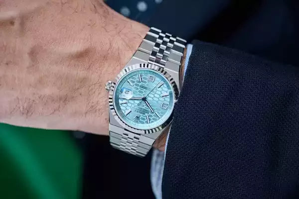 Auf den ersten Blick könnte man aufgrund des Jubilee-Armbands und der geriffelten Lünette eine DateJust vermuten, doch bei näherer Betrachtung täuscht man sich. Diese neue Uhr hat ein völlig neues Gehäusedesign und Veredelungen, die man bei Rolex nicht typischerweise sieht. Das macht sie aber umso interessanter und verleiht ihr Charakter.
