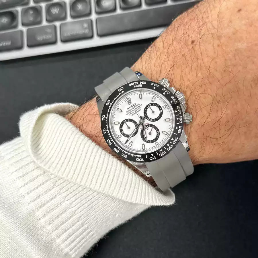 Dieser gleiche Denkprozess wurde bei ZEALANDE verwendet, um das perfekte Kautschukarmband für Ihre Rolex-Uhr zu entwickeln. Gerade jetzt im Winter, wo das Wetter kälter ist, Ihr Handgelenk atmen kann und Sie Ihre Uhr bei Wintersportarten wie Skifahren tragen können, bietet Ihnen ein ZEALANDE-Kautschukarmband für Rolex genau die Möglichkeit dazu – und das mit einem Hauch von Farbe! Ganz zu schweigen davon, dass ein Metallarmband morgens eiskalt ist, wenn man es ums Handgelenk legt, im Vergleich zu einem perfekt weichen und dennoch strapazierfähigen ZEALANDE-Kautschukarmband.