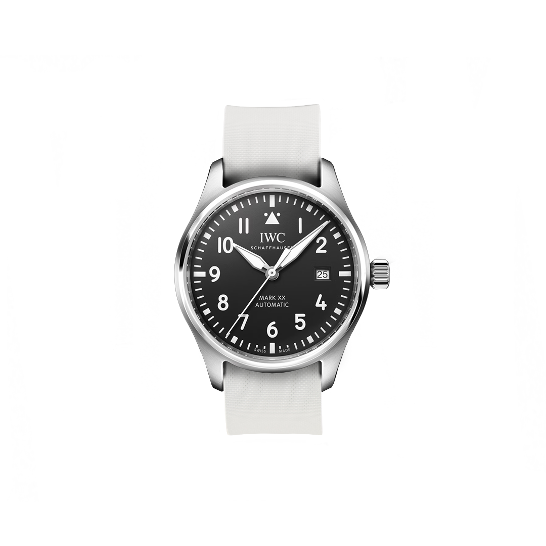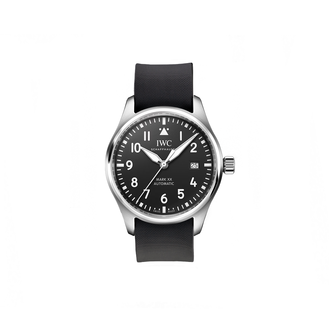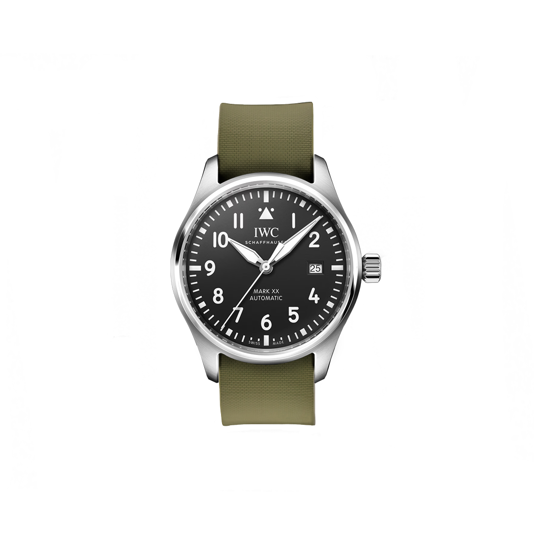 20 mm breites NATO Single Pass-Kautschukarmband für IWC® Mark XX Fliegeruhr, schwarzes Zifferblatt