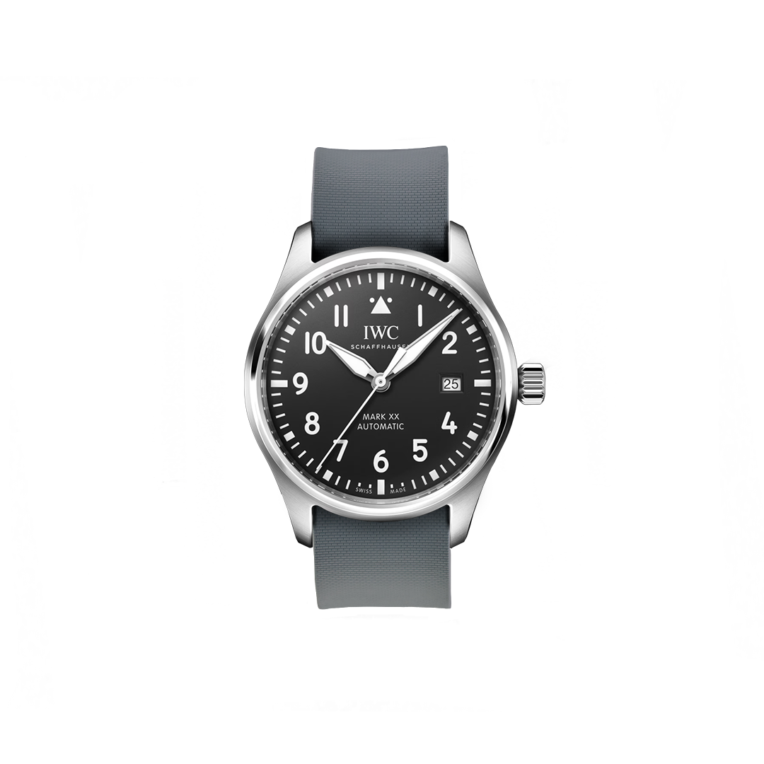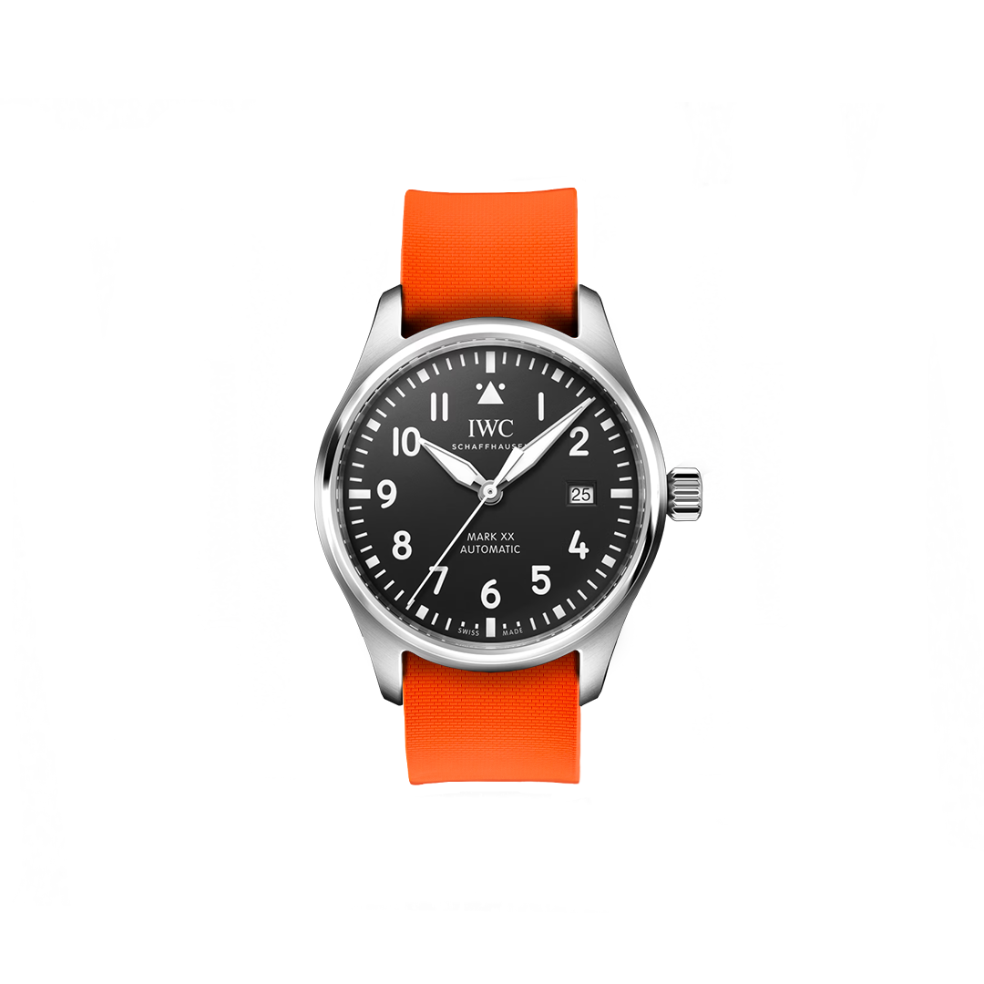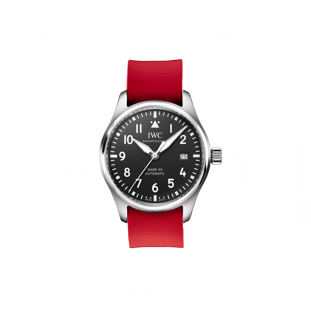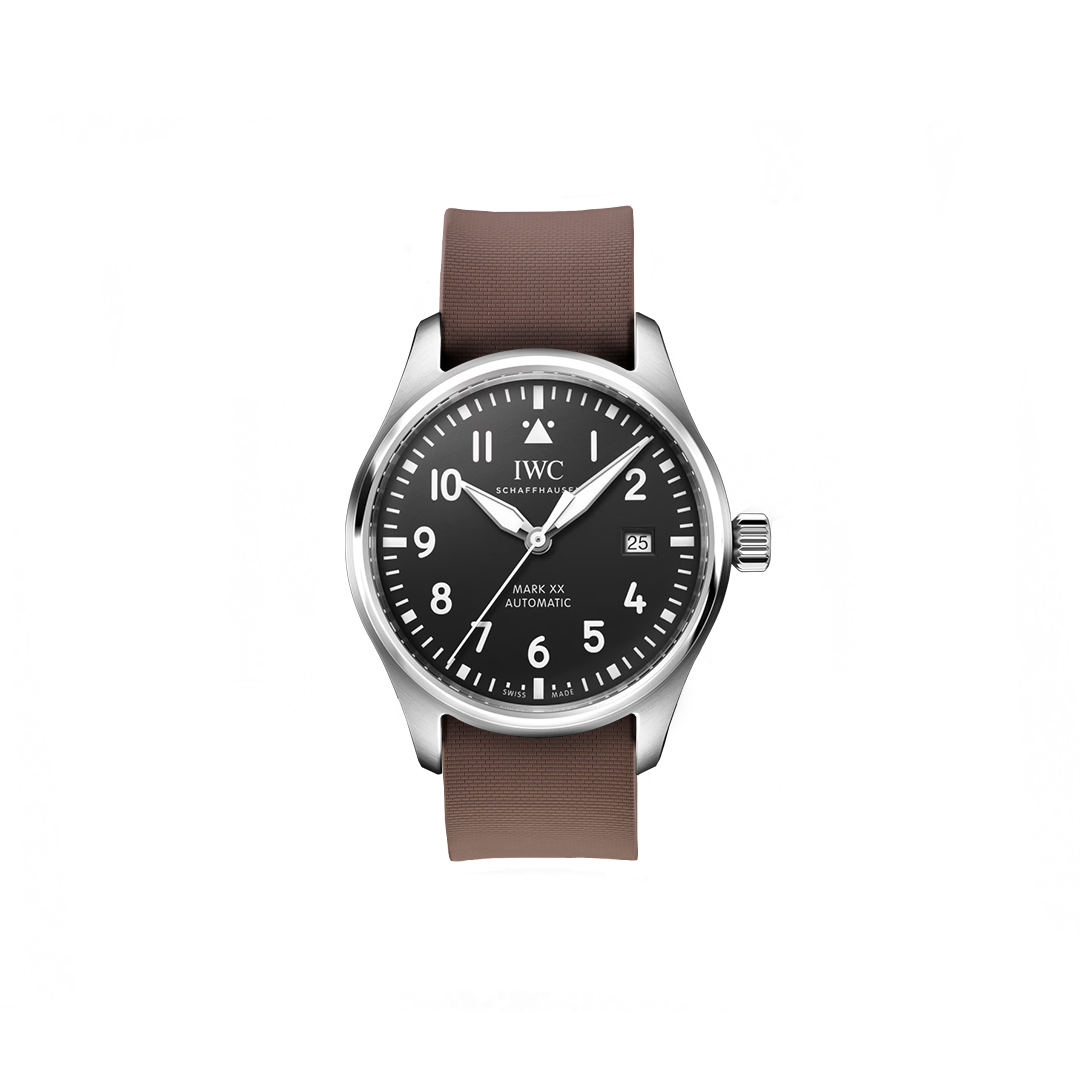 20 mm breites NATO Single Pass-Kautschukarmband für IWC® Mark XX Fliegeruhr, schwarzes Zifferblatt
