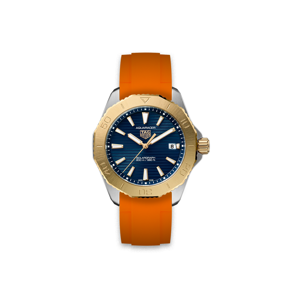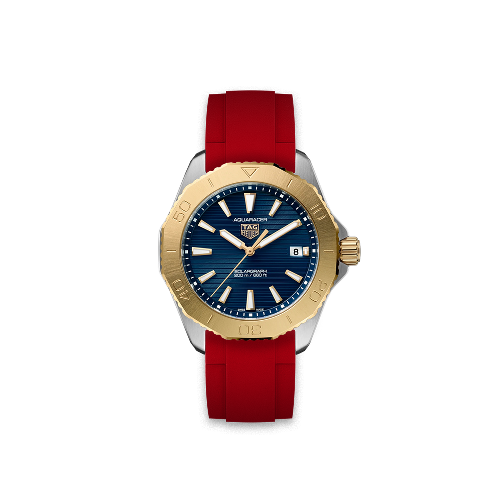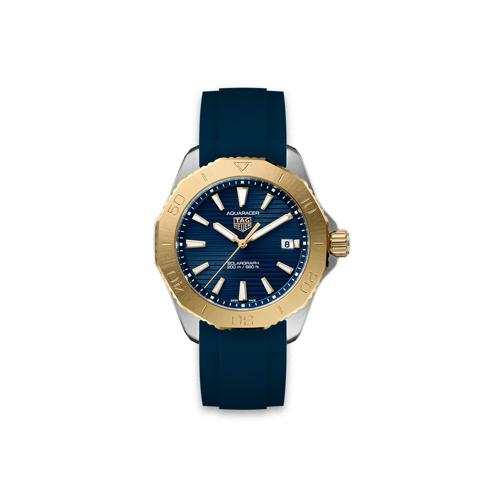 Kautschukband für TAG HEUER AQUARACER PRO 200 Solargraph Blau und Gelbgold