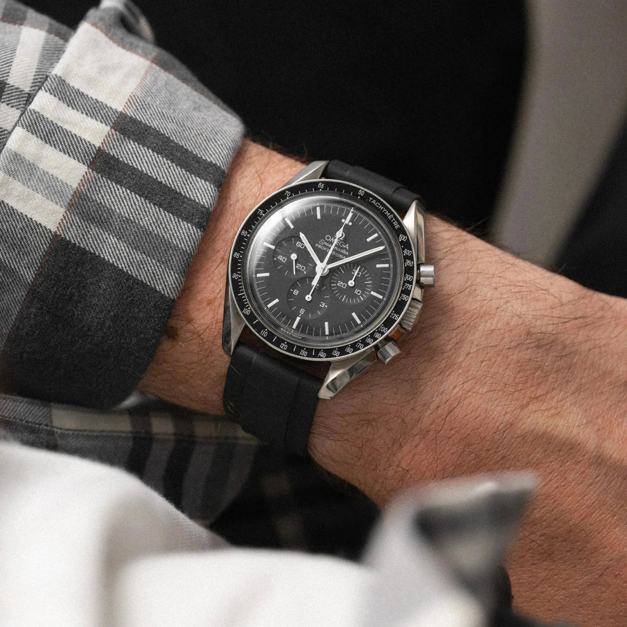 Traditionnellement, les montres étaient d'abord portées sur un bracelet en cuir, matériau le plus raffiné et élégant. Au fil du temps, les horlogers ont perfectionné l'utilisation du métal jusqu'à développer des bracelets métalliques. Aujourd'hui encore, en 2025, la grande majorité des montres sont équipées d'un bracelet en métal. Cependant, ces dernières décennies, des marques horlogères comme Omega ont de plus en plus recours au caoutchouc. ZEALANDE étant très spécialisée dans ce domaine, nous avons pensé qu'il serait judicieux d'analyser pourquoi des marques comme Omega utilisent le caoutchouc comme bracelet de montre.