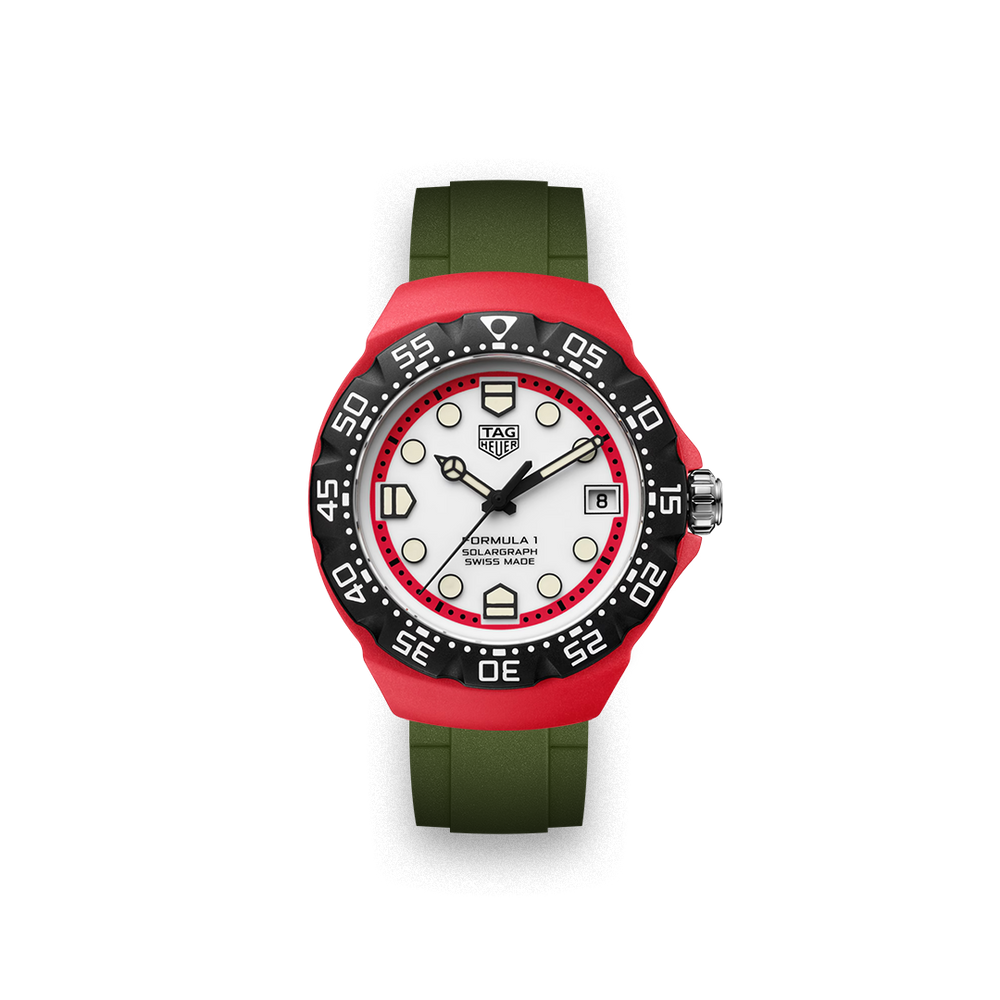 Bracelet droit en caoutchouc 18 mm pour Tag Heuer® Formula 1 Solargraph noir et rouge