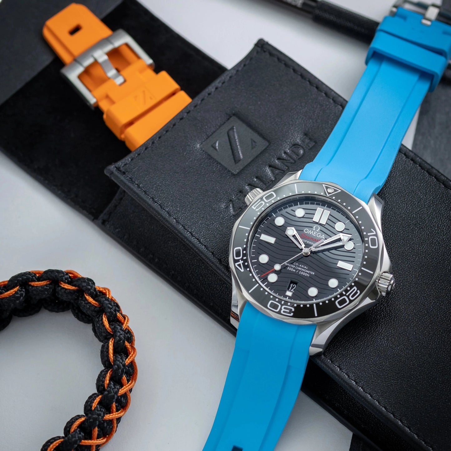 Rubber Strap for OMEGA® Seamaster Diver 300M Co-Axial 42mm Black Ceramic Rubber Straps ZEALANDE Miami Blue Brushed Classic