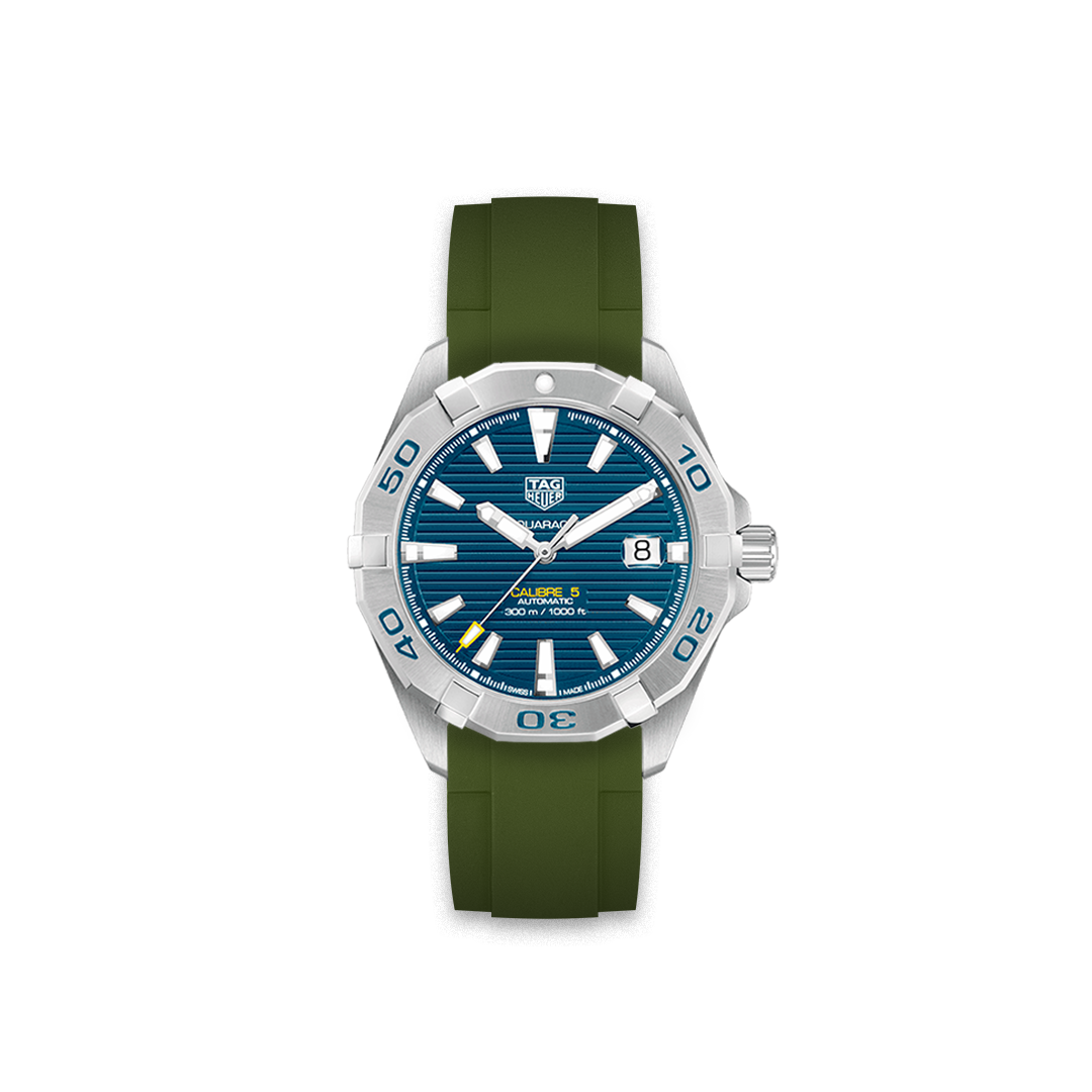 Rubber Strap for TAG HEUER® Aquaracer Calibre 5 Blue in 41mm (Ref: WBD211XXX) Rubber Straps ZEALANDE Khaki Polished Classic