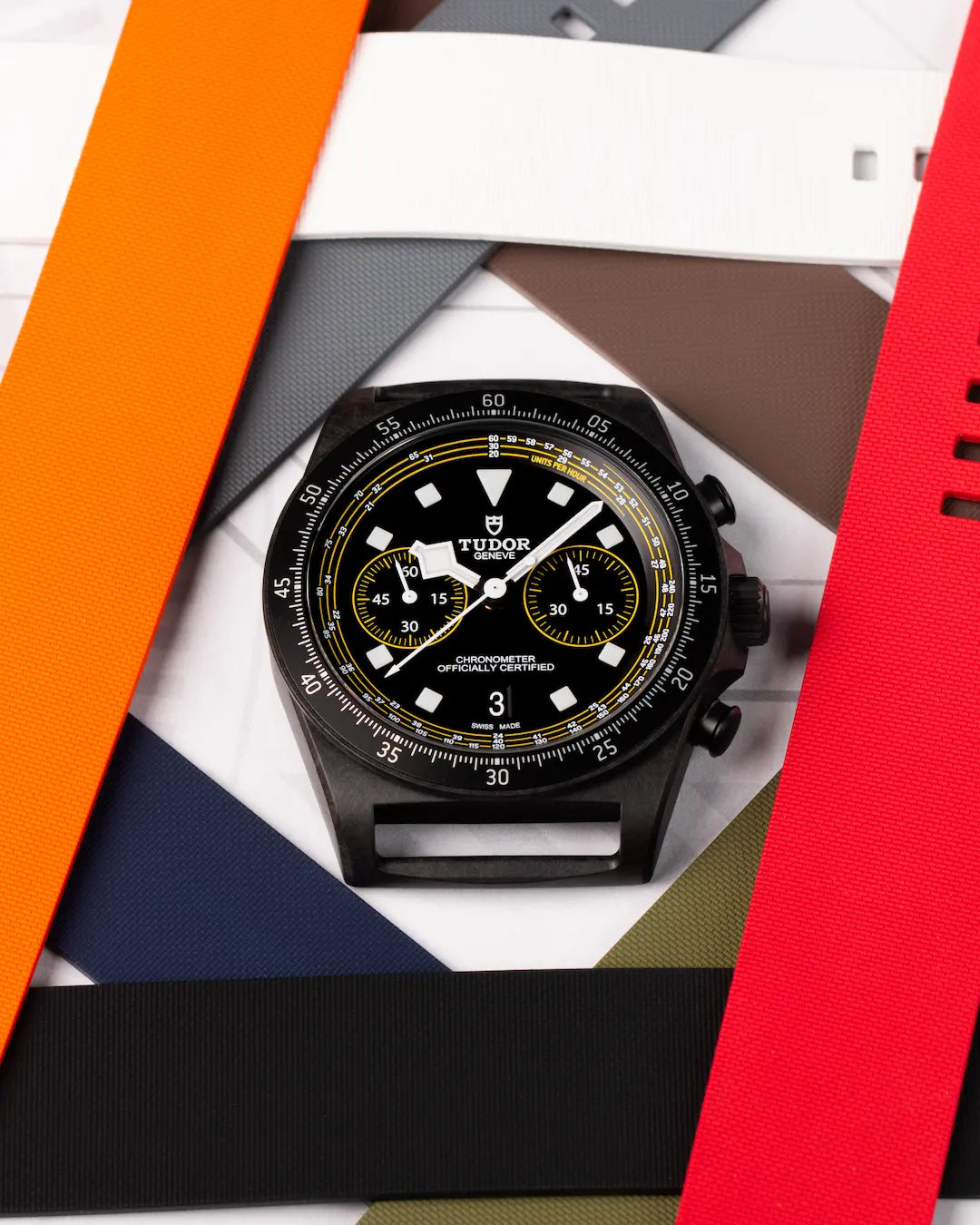Created as a tribute to racing legend Fabian Cancellara and the spirit of the Maillot Jaune, the Pelagos FXD Chrono “Yellow” is one of Tudor’s most exclusive releases.